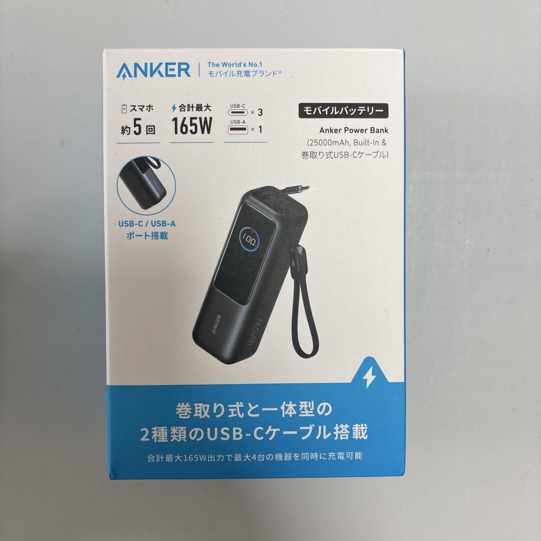 「Anker Power Bank (25000mAh, 165W)」は、Ankerが提供する、超大容量かつ超高出力のプレミアムモバイルバッテリーです。複数のデバイス、特にノートPCやタブレット、高性能スマートフォンなどを同時に高速充電することを目的としており、モバイルワーク、旅行、アウトドアなど、あらゆるシーンでの電力ニーズに応えます。