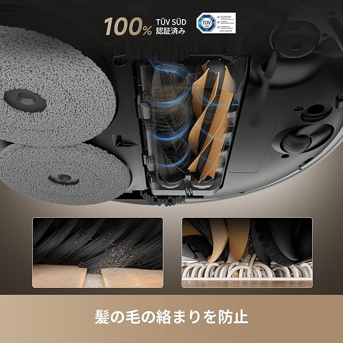 主な機能: 吸引+水拭き両用、自動ゴミ収集、モップ自動洗浄、AI障害物回避、360°レーザーナビゲーションなど。