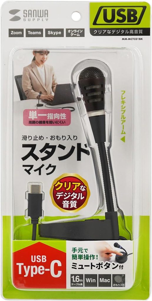 そこで注目されるのが、USBや3.5mmステレオミニプラグで接続できるPC用外付けマイク。中でも、低価格かつクリアな音声を実現する製品が好まれ、サンワサプライの「MM-MCTC01BK」はまさにそんな需要を満たす一本と言えます。