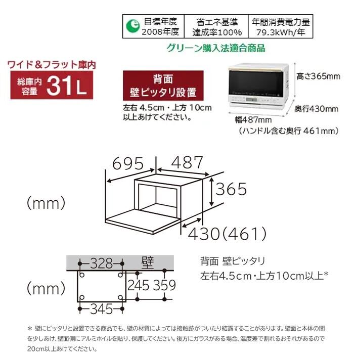 – 室内放熱: オーブン稼働時は周囲が熱くなるので放熱スペースを確保