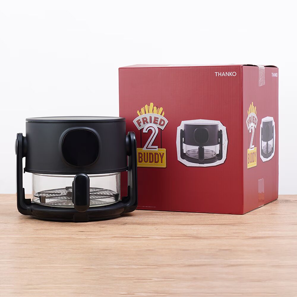 THANKO 揚げ物も煮込みもできるエアフライヤー「フライ2バディ」ARFR25HBKは、ノンオイルでヘルシーな揚げ物と簡単な煮込み調理を、コンパクトな一台で実現する、ユニークで多機能な調理家電です。可視窓やタッチパネルといったモダンな機能も搭載し、特に一人暮らしや二人暮らしの食生活を、もっと手軽に、もっと豊かに、もっとヘルシーに変える可能性を秘めています。