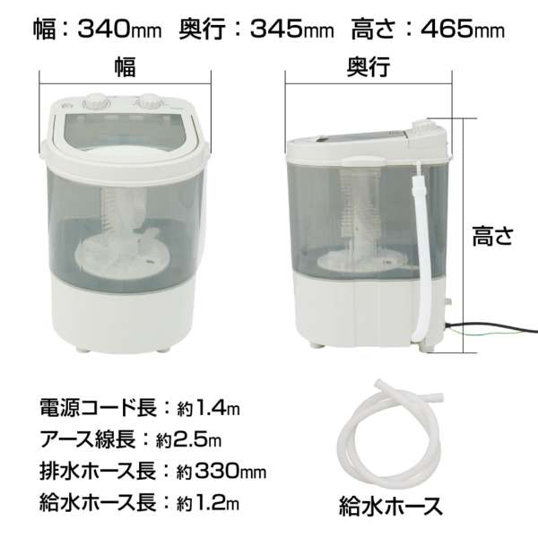 タイプ:小型・簡易洗濯機(容量・脱水機能の有無は下記参照)
