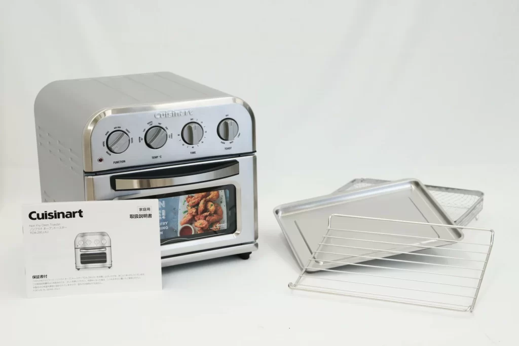 クイジナートTOA-39SJは4枚トーストとピザストーン付属が特徴的。他社のノンフライ系オーブントースターと比較しても、多用途かつビジュアル的にも支持を得ています。